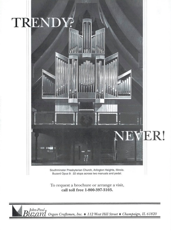 I’m loving the trad energy of this 1993 ad from The American Organist. Also, it appears Buzard Pipe Organ Builders is still in business; good for them!